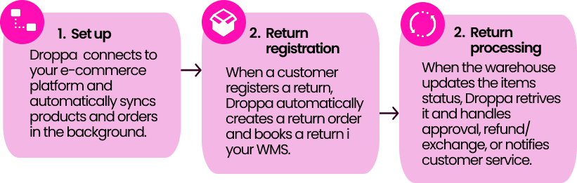 Droppa integrates seamlessly with your existing systems through three simple steps: